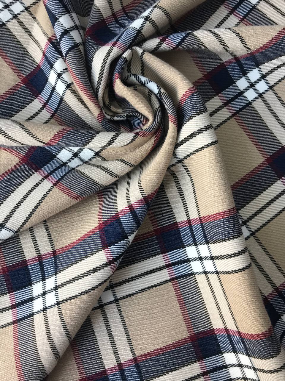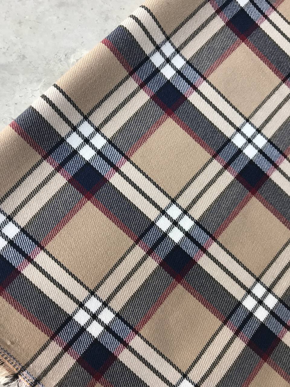 Костюмная клетка с вискозой – бежево-синяя