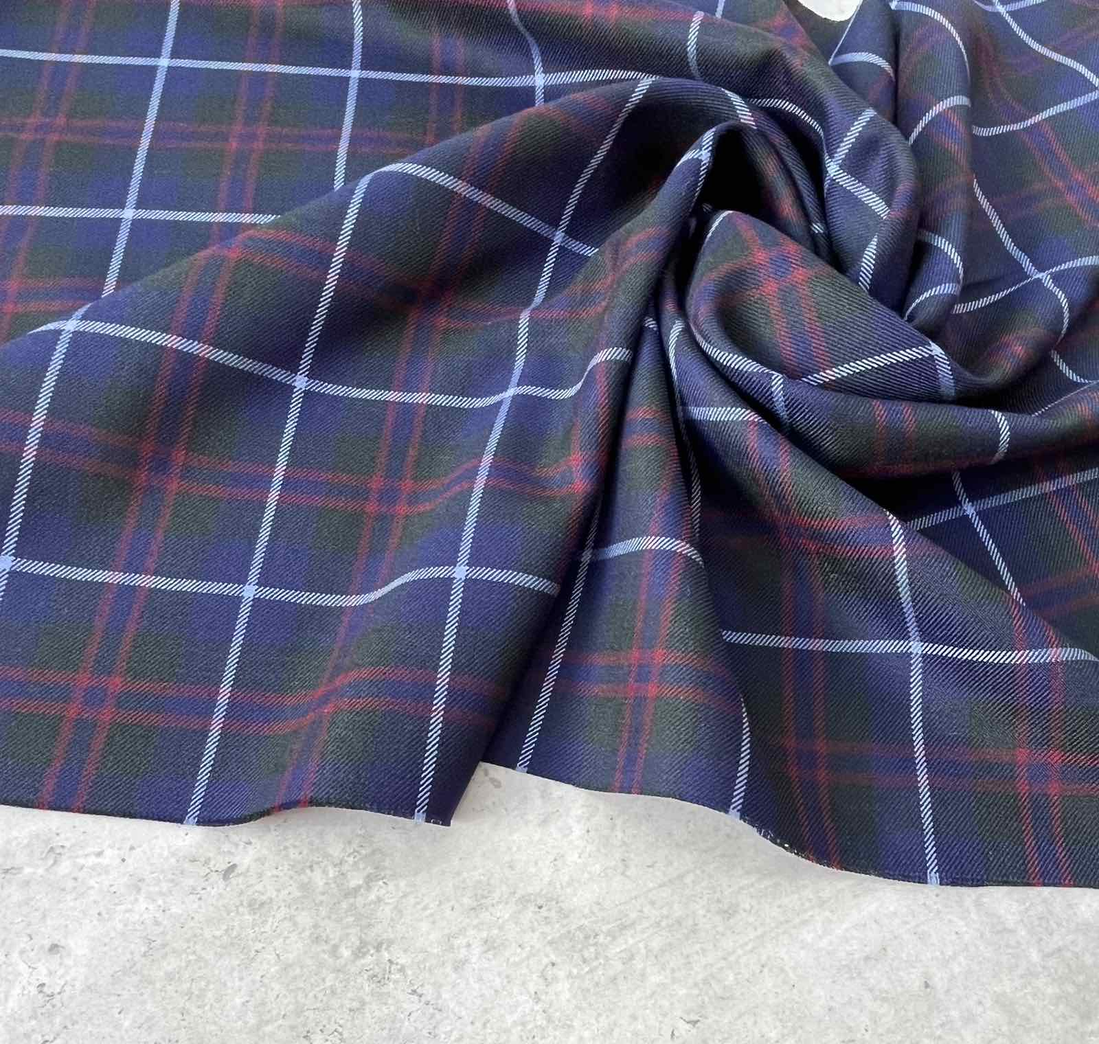 Костюмная шерсть Глобус — сине-красная клетка- плотная, не просвечивается, не мнется. Ткань держит складку, не катается. Превосходно подойдет для пошива костюмов, жакетов, теплых платьев, юбок в складку, юбок макси, шорт, брюк.