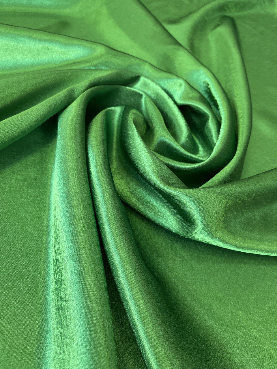 Креп-сатин —травяной. Материал с особым переплетением нитей, с очень большой скруткой. Лицевая сторона глянцевая и шелковистая. Изнаночная сторона ткани матовая, слегка шероховатая.