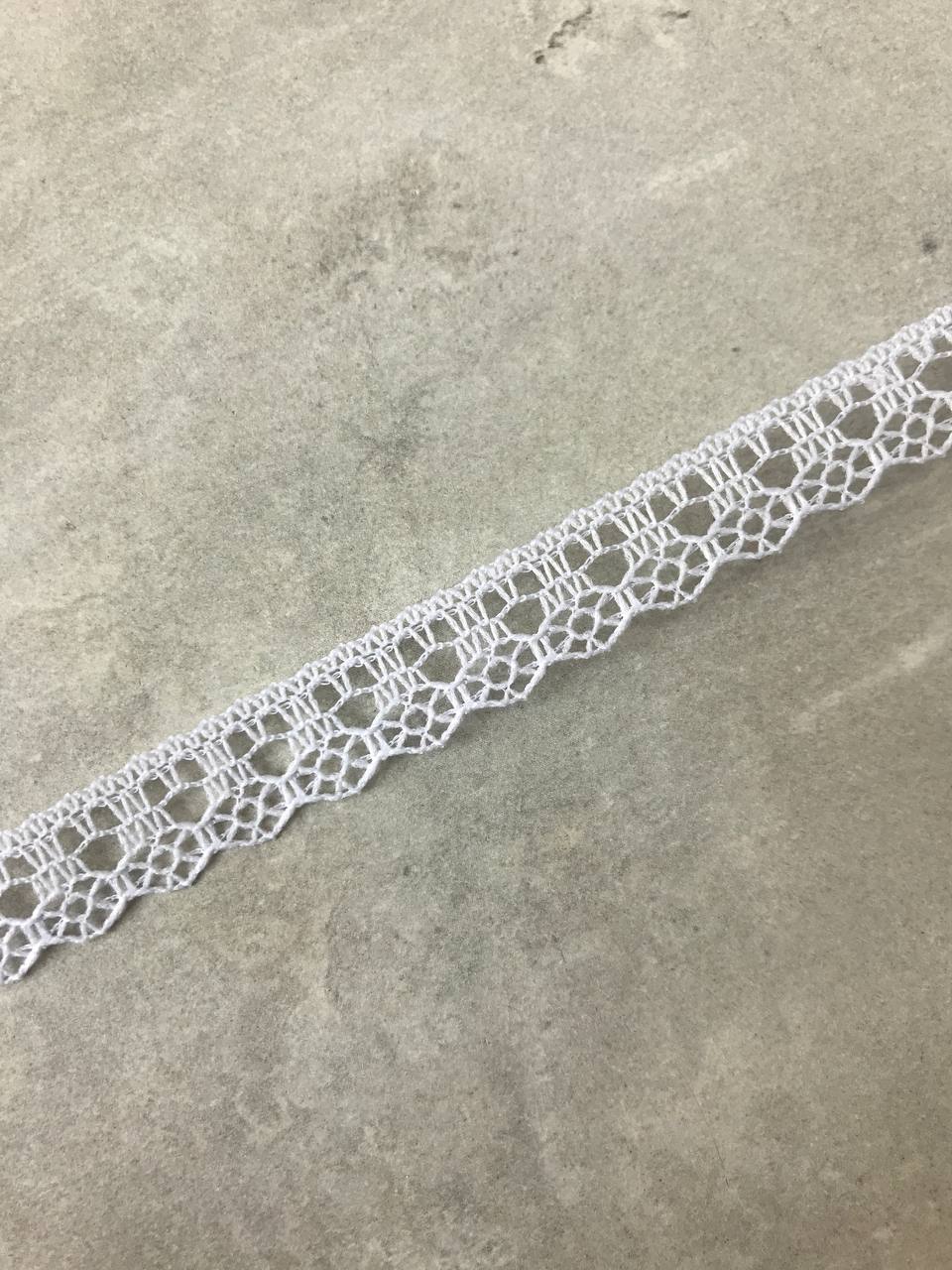 Кружево тонкое, жестковатое. Используйте для декорирования различных предметов интерьера, одежды, платьев, кукол. Так же для отделки детских конвертов и кроваток.