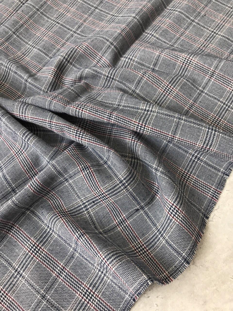 Лён костюмный – серо-синий в клетку