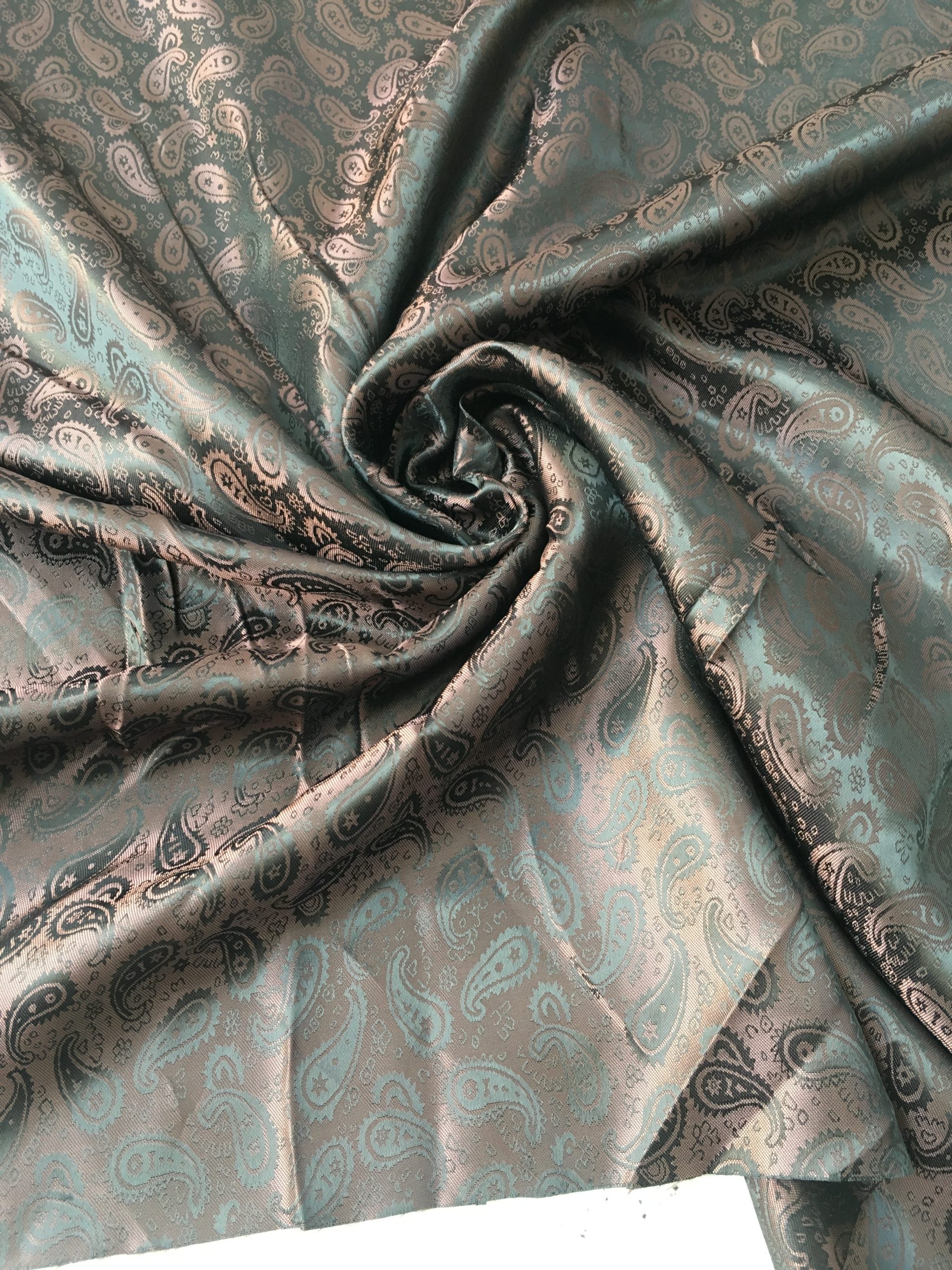 Подкладка жаккардовая с вискозой-Пейсли коричневая. Ширина 150 см. Это мягкая подкладочная ткань, не образует деформаций, износостойкая, скользкая, не просвечивает, может электризоваться. Полотно имеет очень красивый непринужденный сатиновый блеск. Прекрасно смотрится в качестве подкладки всех видов верхней одежды, а также костюмов. Может использоваться для декоративных целей, при производстве чехлов для хранения одежды.