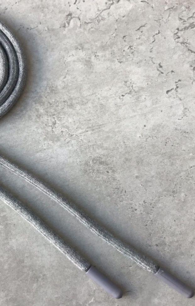 Шнур х/б круглый, с наполнителем, 6 мм с пластиковым наконечником 135 см – серый
