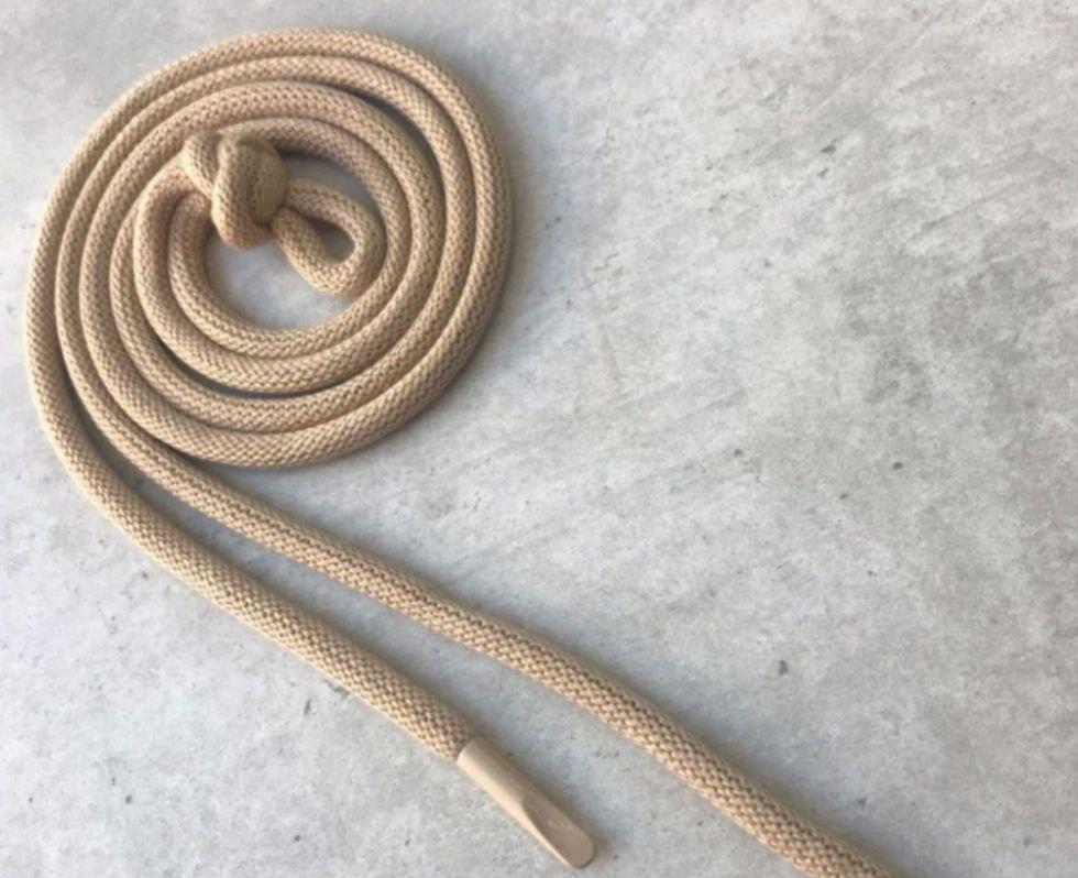 Шнур х/б круглый, с наполнителем, 6 мм с металлическим наконечником 135 см — песочный