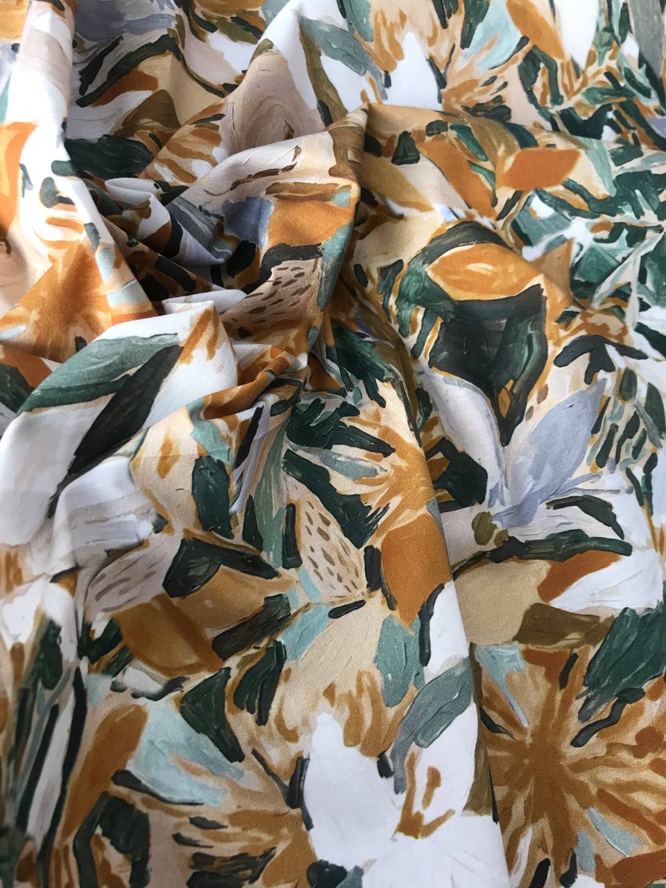 Ткань легкая, воздушная, не просвечивается, без стрейча, держит форму и немного мнется. На ощупь шелковистая. Отлично подойдет ткань для пошива платьев, сарафанов, топов, блузок, летних костюмов, юбок и др. изделий.