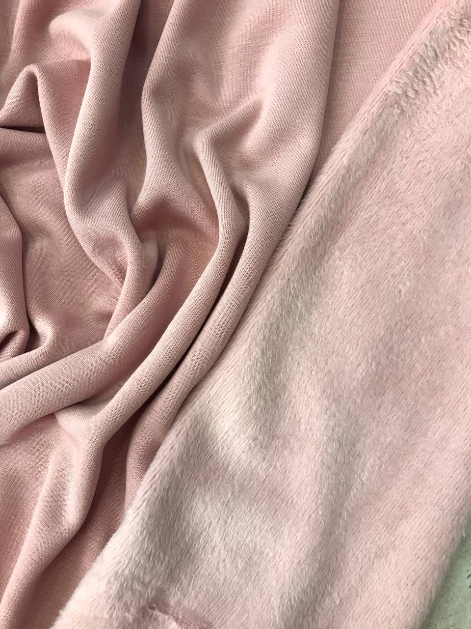 Трикотаж мягкий, эластичный, растяжение в 2 стороны, мягккая драпировка, очень приятный тактильно. Изнаночная сторона – мелкий мягкий мех. Рекомендуем использовать для пошива костюмов, жилеток, платьев, брюк, юбок, шапок, снуда, капора.